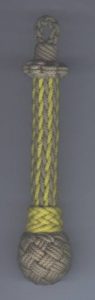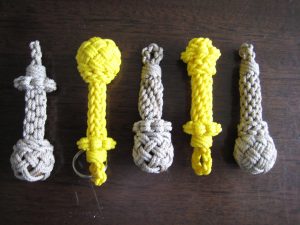 As a Boy Scout, many years ago, Jeff first learnt about knots. Some years later when in the Norwegian Merchant Navy he watched a fellow-crewman making ships in bottles, splicing cotton to create the rigging. This renewed his interest in knotting and he bought a copy of the Ashley Book of Knots, now considered the ‘Bible of Knot Tyers’. In the early 80’s he accompanied Lesley to a Woodworking Show in London. Whilst there, he spotted a bearded man in a red hat sitting at a stand surrounded by rope and cord. Jeff being Jeff went up and asked what rope and knots had to do with woodworking. The reply was “woodworking tools but my main interest is tying knots”. This was Des Pawson, a founder member of the newly formed International Guild of Knot Tyers. They spent some time chatting, and at the end of it, Jeff was the latest member of the Guild. Since then he has been a Committee member for about 10 years, the Guild’s Librarian and finally the President (from 2002-2005). He is still an active member of the Guild, attending many Guild events at home and overseas.